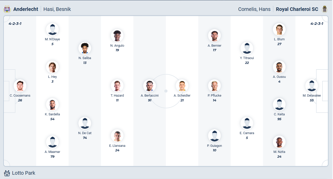 Charleroi không phải đội bóng mạnh, họ chỉ đứng thứ 10 mùa giải trước. Mùa giải này đang diễn ra không tốt với các cầu thủ Charleroi, chuỗi trận không thắng gần đây đã khiến họ trôi xuống vị trí thứ 12 và nếu không cải thiện phong độ thì họ sẽ dần trôi xuống nhóm cuối bảng. Quyết định thay đổi trên băng ghế chỉ đạo đã được đưa ra, HLV tạm quyền Hans Cornelis sẽ có nhiệm vụ đưa đội bóng ra khỏi khó khăn. Tuy nhiên chuyến làm khách trên sân Anderlecht ở vòng 20 không hề dễ dàng, nhiều khả năng Charleroi sẽ phải nhận thêm một trận thua nữa.