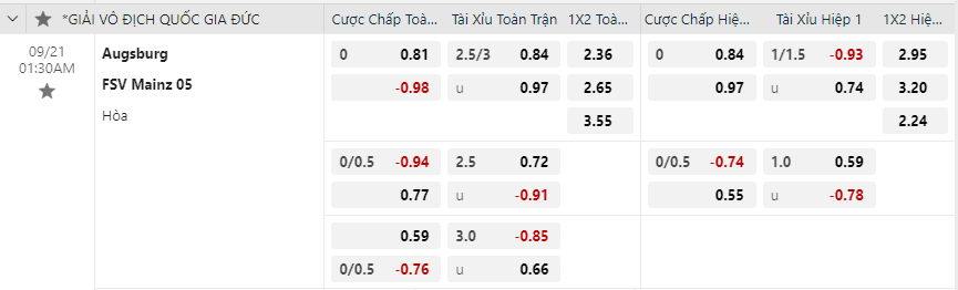 Soi kèo hiệp 1 Augsburg vs Mainz 05