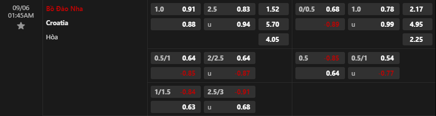 Tỷ lệ kèo Bồ Đào Nha vs Croatia