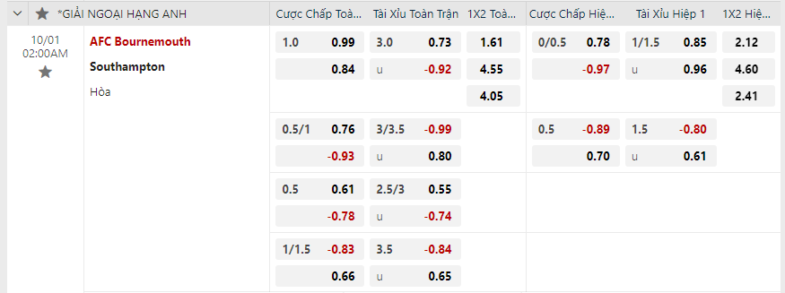 Soi kèo hiệp 1 Bournemouth vs Southampton