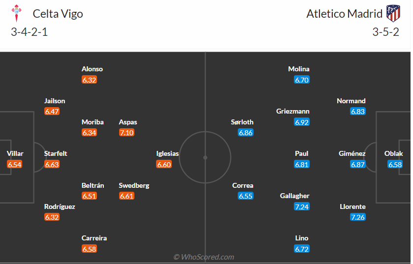 Celta Vigo đứng thứ 13 mùa giải trước, vị trí rất ổn so với viêc luôn phải đấu tranh cho việc trụ hạng những mùa bóng trước đây. Mùa bóng năm nay đội bóng của HLV Claudio Giráldez cũng đang chơi rất ổn khi có 9 điểm sau 6 vòng đấu và đứng thứ 9. Các cầu thủ Celta Vigo cần duy trì vị trí này trên bảng xếp hạng nên họ cần một kết quả ổn định trong các trận đấu sắp tới của mình, trước đối thủ mạnh như Atletico Madrid ở vòng 7 thì có lẽ Celta Vigo sẽ hướng đến một trận hòa. Tuy nhiên điều này xem ra khó thành hiện thực dù họ có lợi thế sân nhà.