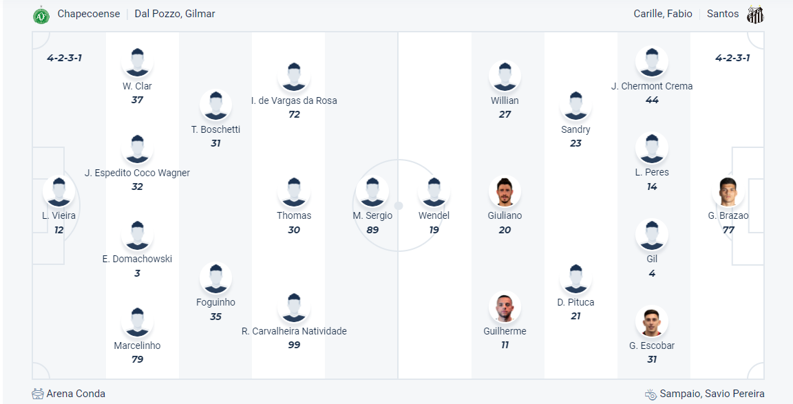 Santos đặt mục tiêu thăng hạng ngay mùa giải này sau khi bị xuống hạng ở mùa giải trước từ hạng đấu cao nhất của Brazil. Đội bóng của HLV Fábio Carille đang làm tương đối tốt điều này khi đang đứng đầu bảng. Tuy nhiên phong độ thời gian gần đây của Santos là không thật tốt và ngôi đầu bảng của họ có thể mất bất cứ lúc nào nếu không giành chiến thắng trong các trận đấu của mình. Chính vì vậy 3 điểm là điều duy nhất các cầu thủ Santos hướng đến khi đến làm khách trên sân của Chapecoense, nhiều khả năng đội khách sẽ không gặp nhiều khó khăn để đạt được mục đích bởi đội chủ nhà đang chơi không tốt.