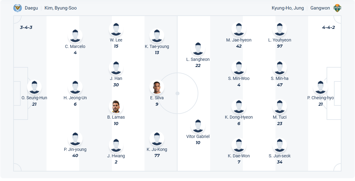 Daegu chưa bao giờ là đội bóng mạnh, họ đang chơi không tốt mùa giải này khi đứng cuối bảng của K-League với chuỗi trận không biết đến mùi chiến thắng. Với thành tích như vậy thầy trò HLV Park Chang-hyun có nguy cơ xuống hạng rất cao. Chính vì vậy họ sẽ không thể dồn toàn bộ sức mạnh cho mặt trận FA Cup, nơi hy vọng đoạt cup là hầu như không có. Trước đối thủ được đánh giá cao hơn như Gangwon thì cơ hội giành chiến thắng là không cao, nhiều khả năng Daegu sẽ để thua trận này và chấp nhận bị loại.