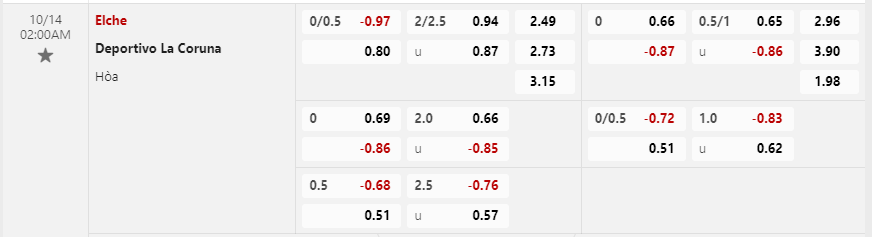 Soi kèo châu Á Elche vs Deportivo La Coruna