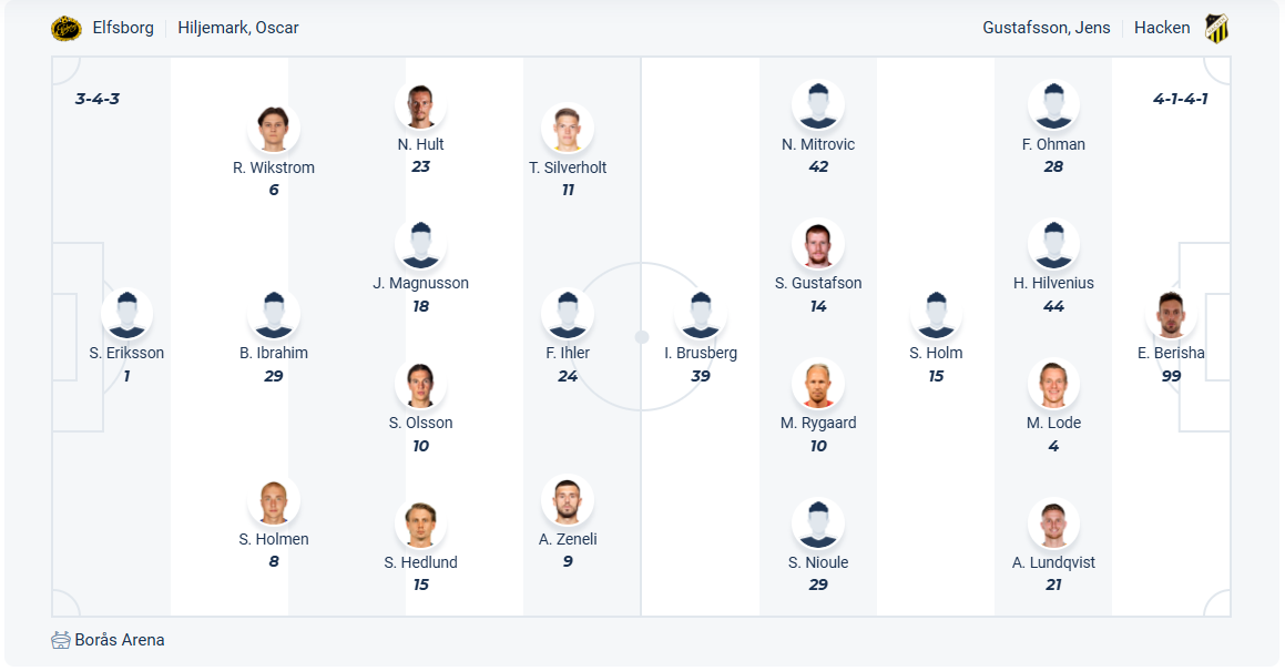 Elfsborg đang đứng thứ tư trên bảng xếp hạng, so với vị trí thứ 7 mùa trước thì rõ ràng đội bóng của HLV Oscar Hiljemark đã có sự tiến bộ. Tuy nhiên ở 2 vòng gần nhất họ không thể thắng nên đã để các đội xếp trên tạo khoảng cách về điểm số. Các cầu thủ Elfsborg cần ngay lập tức trở lại với chiến thắng để không bị tụt lại phía sau, việc chỉ phải đón tiếp đội bóng yếu hơn như Hacken ở vòng 14 này là cơ hội không thể tốt hơn để giành chiến thắng trở lại. Nhiều khả năng họ sẽ chơi tốt để có được điều mình cần.