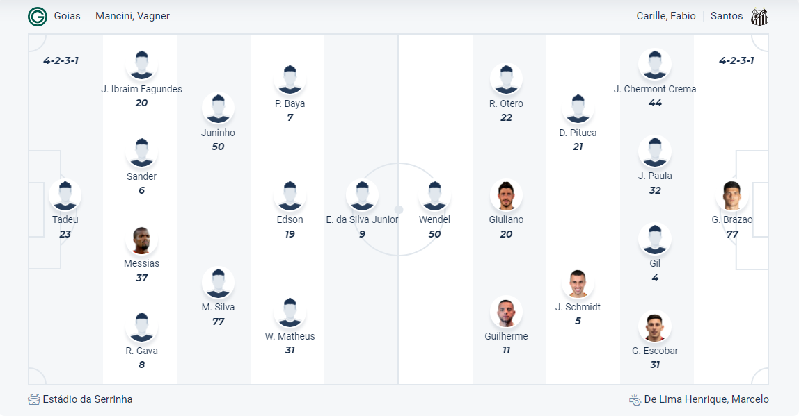 Santos cũng phải xuống hạng mùa trước từ Serie A như Goias, họ cũng đặt mục tiêu thăng hạng luôn nhưng khác với Goias, các cầu thủ của HLV Fábio Carille đang làm rất tốt điều này với vị trí thứ 2 khi mùa giải đang đi đến hồi kết. Phong độ của Santos cũng rất ổn khi thắng 4, hòa 1 ở 5 vòng gần nhất, với phong độ này thì đương nhiên họ được đánh giá cao hơn khi đến làm khách trên sân của Goias, nhiều khả năng phong độ tốt sẽ giúp Santos ra về với 3 điểm trọn vẹn.