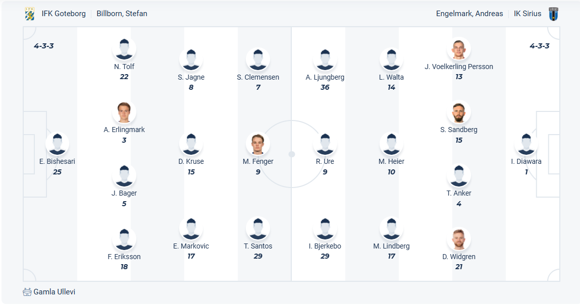Goteborg đang đứng thứ 7 trên bảng xếp hạng, so với vị trí thứ 13 mùa trước thì đội bóng của HLV Stefan Billborn đã có sự tiến bộ. Họ thắng 3/5 vòng gần nhất và đó là phong độ chấp nhận được với đội bóng này, họ vừa để thua vòng trước và rất muốn trở lại với chiến thắng ở vòng đấu thứ 14 này. Đối thủ của họ là Sirius, đội bóng không mạnh nhưng lại chơi tốt thời gian gần đây nên việc giành chiến thắng là điều không hề dễ dàng. Nhiều khả năng các cầu thủ Goteborg sẽ chỉ có được trận hòa ở vòng đấu này.