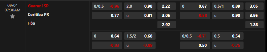 Soi kèo hiệp 1 Guarani vs Coritiba