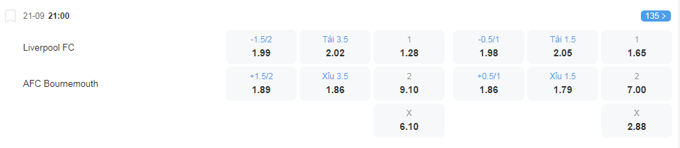 Soi kèo châu Á Liverpool vs Bournemouth
