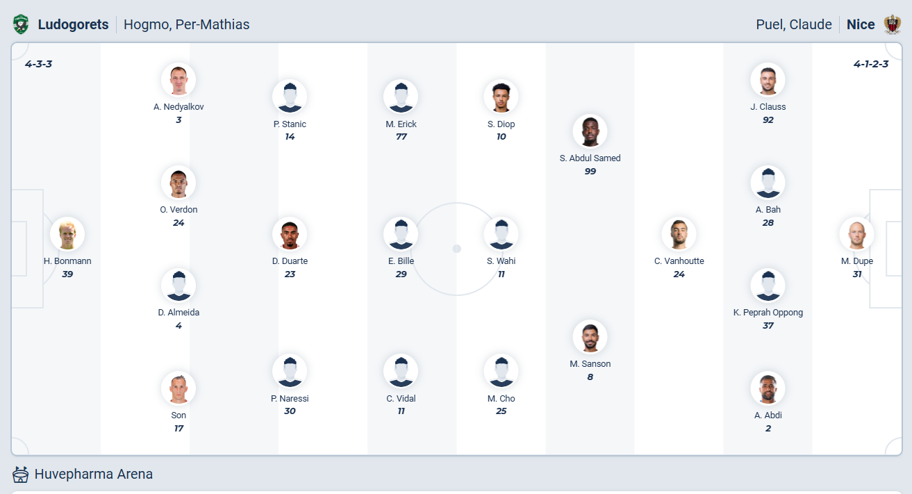 Ludogorets là đội bóng mạnh của Bulgaria, họ thường xuyên vô địch quốc gia nhưng khi ra đấu trường châu Âu thì chỉ là đội bóng không tên tuổi. Việc thầy trò HLV Per-Mathias Høgmo vào đến vòng League Phase của Europa League đã là một thành tích tốt của đội bóng này. Thực tế cho thấy họ không phải đội bóng mạnh khi chỉ đứng thứ 25 sau 7 lượt trận với 7 điểm. Với số điểm và vị trí như hiện tại thì cơ hội lọt vào top 24 đội vẫn còn với các cầu thủ Ludogorets, điều họ cần là giành chiến thắng ở lượt đấu cuối cùng. Trước đối thủ đã chắc chắn bị loại là Nice thì nhiều khả năng đội chủ nhà sẽ có được 3 điểm trận này.