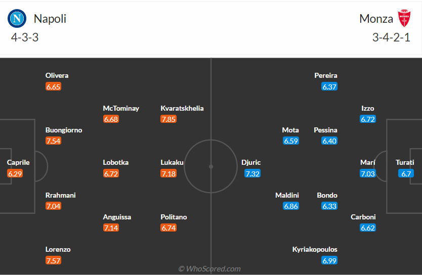 Napoli là đội có chất lượng đội hình tốt hơn, họ được đá trên sân nhà và phong độ tốt hơn rất nhiều so với Monza (thắng 3, hòa 1, thua 1 so với hòa 3, thua 2). Đây sẽ là điều giúp phần thắng trận này thuộc về đội bóng chủ nhà nên với tỉ lệ kèo Napoli chấp 1.25 thì người chơi nên đặt cửa cho họ thì cơ hội thắng cuộc cao hơn.