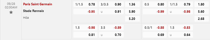 Tỷ lệ kèo Paris Saint-Germain vs Rennes