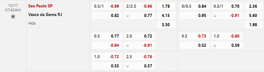 Soi kèo hiệp 1 Sao Paulo vs Vasco da Gama