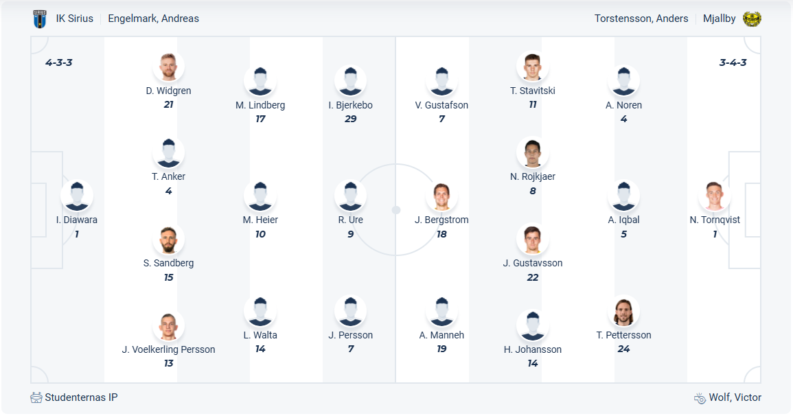 Sirius không phải đội bóng mạnh của giải Thụy Điển, họ chỉ đứng thứ 9 mùa giải trước. Mùa giải năm nay đội bóng của HLV Andreas Engelmark còn đang chơi tệ hơn thế, họ đứng thứ 13 và chỉ hơn 2 đội xuống hạng 1 điểm. Đội bóng này có thể tụt xuống vị trí phải xuống hạng bất cứ lúc nào nếu không thể giành chiến thắng ở vòng đấu tới. Vậy nên các cầu thủ Sirius rất quyết tâm có 3 điểm ở vòng đấu thứ 15 này, tuy nhiên đối thủ của họ lại là đội bóng đầu bảng Mjallby nên xem ra cơ hội có điểm không cao. Nhiều khả năng Sirius sẽ phải nhận thêm một trận thua nữa.