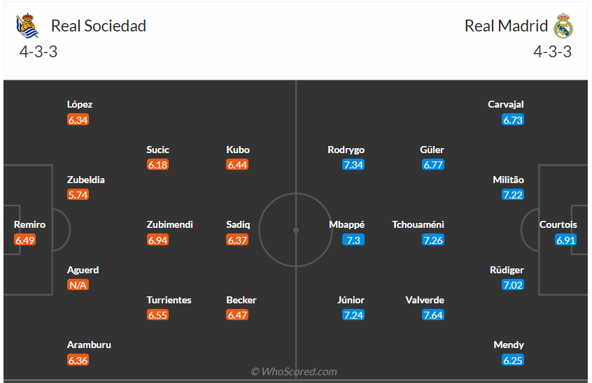Dự đoán tỉ số trận đấu: Sociedad 0 – 2 Real Madrid (Chọn Real Madrid và Xỉu trận)