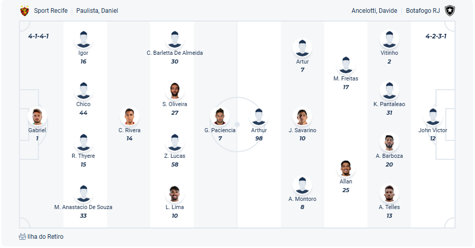 Botafogo đã giành chức vô địch mùa trước một cách đầy bất ngờ, tuy nhiên mùa bóng năm nay mọi thứ không còn thuận lợi như trước. Đội bóng của HLV Davide Ancelotti đang đứng thứ 6 và kém đội đầu bảng 8 điểm, mọi thứ chưa phải đã hết, cơ hội bảo về chức vô địch là vẫn còn và điều các cầu thủ Botafogo cần làm là tiếp tục giành chiến thắng trong các trận đấu của mình. Đến làm khách trên sân của đội cuối bảng Sport Recife là cơ hội không thể tốt hơn để có 3 điểm và nhiều khả năng Botafogo sẽ không gặp quá nhiều khó khăn để có được điều mình cần.