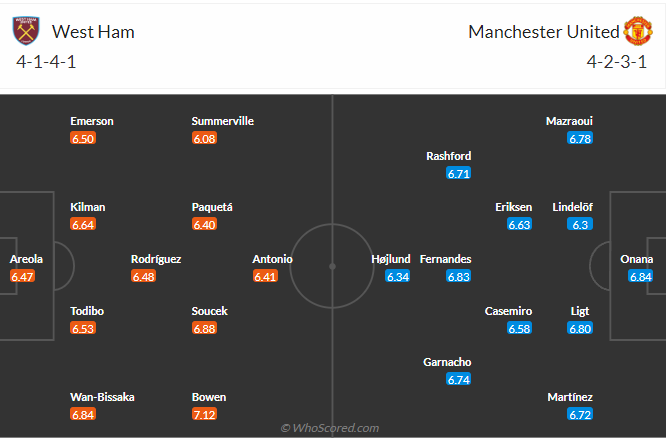 Đội hình dự kiến West Ham United vs Manchester United